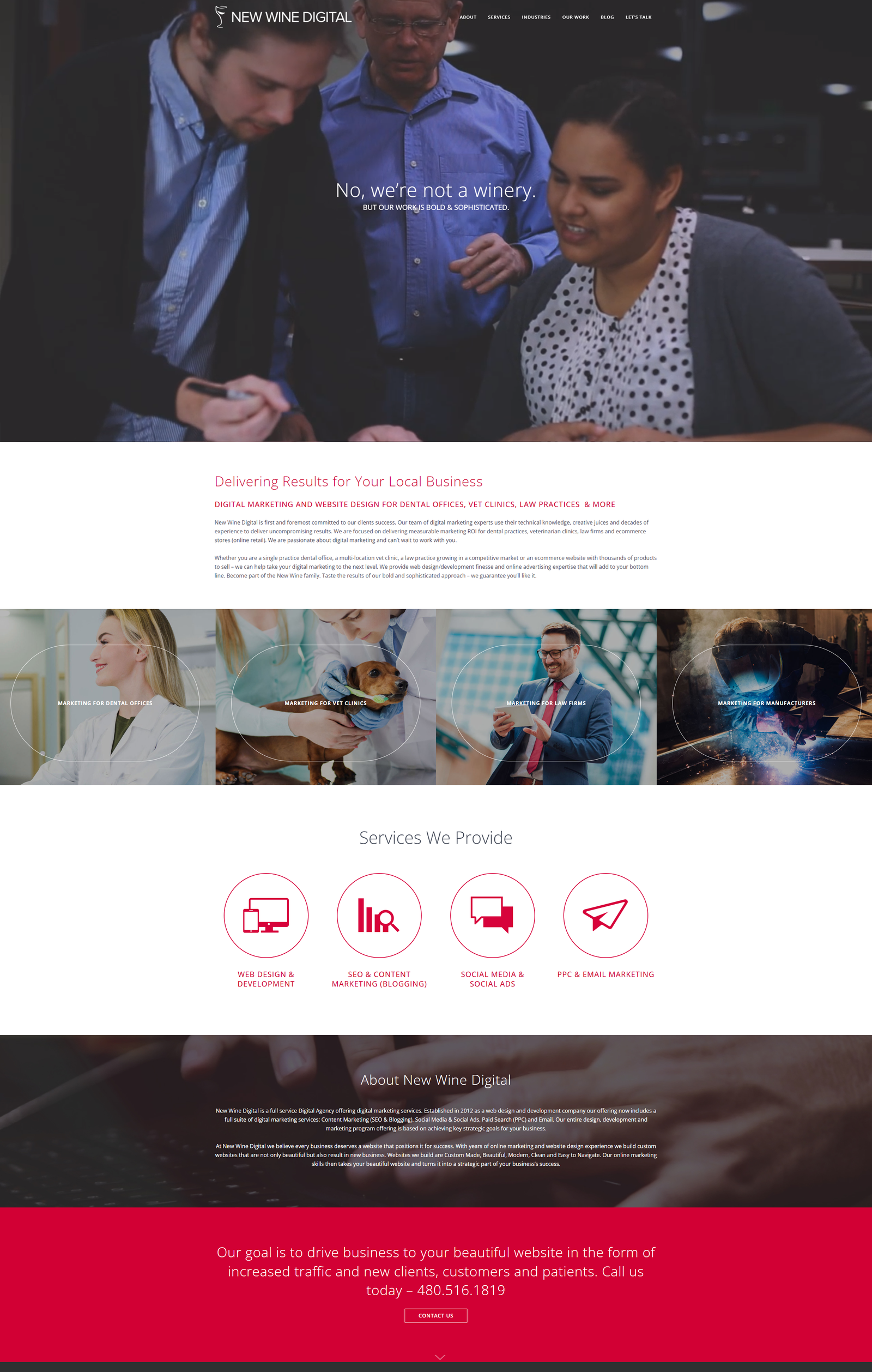 I was tasked with designing a new website for New Wine Digital. The site needed a modern revamp and they wanted it to be minimalistic with large images, less text, and more white space. The site is clearly formatted into sections and user-friendly.